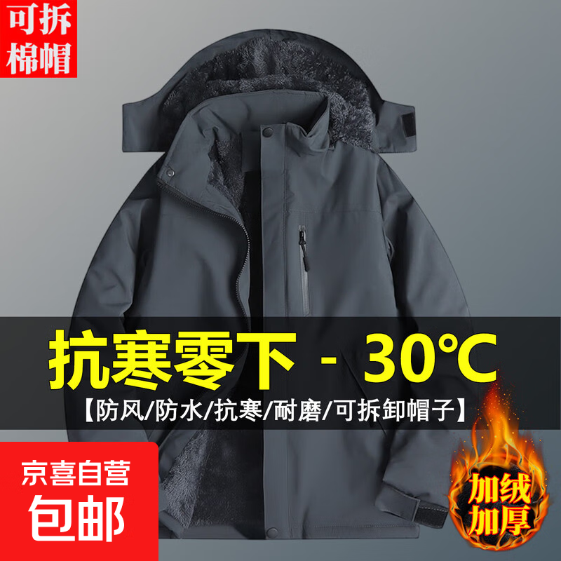 加绒加厚棉服男士秋冬季新款冲锋衣外套棉衣劳保棉袄工作服 A20冲锋衣【加绒加厚】深灰 M 约80-100斤可穿
