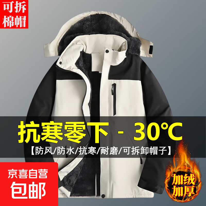 加绒加厚棉服男士秋冬季新款冲锋衣外套棉衣劳保棉袄工作服 A20冲锋衣【加绒加厚】米色 M 约80-100斤可穿