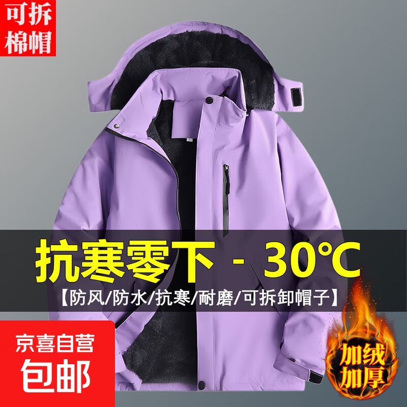 加绒加厚棉服男士秋冬季新款冲锋衣外套棉衣劳保棉袄工作服 A20冲锋衣【加绒加厚】紫色 L 约100-115斤可穿