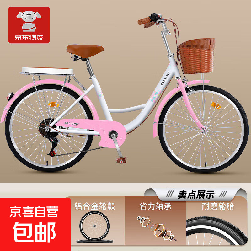 自行车成年人通勤轻便代步休闲学生复古单车上班骑亲子男女士 旗舰/变速-粉【双层铝轮】 22寸【130-150cm】