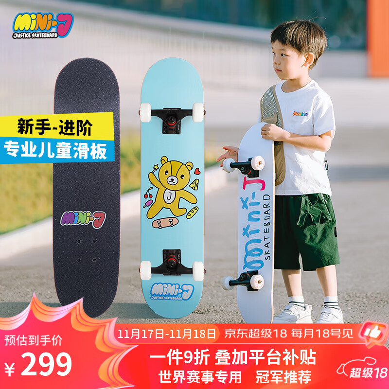 JUSTICE儿童滑板双翘板男女专业款青少年沸点Mini-J 可爱小熊 6-12岁