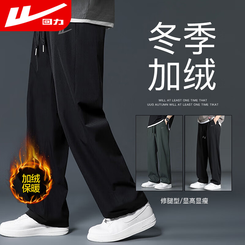 回力(Warrior)休闲裤男冬季宽松直筒阔腿裤子男保暖加绒运动裤男裤
