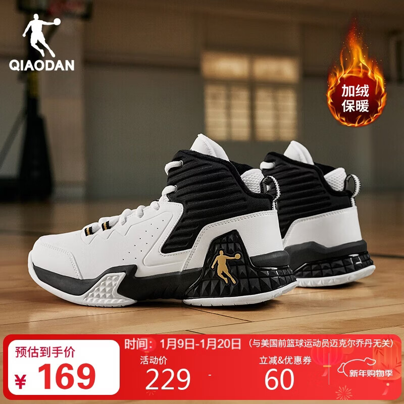 乔丹男鞋篮球鞋高帮皮面秋冬加绒保暖减震耐磨运动鞋