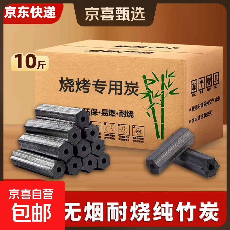 烧烤碳 机制木炭 家用无烟环保取暖碳烤鸭碳露营无烟木炭批发碳 无烟纯果木炭-10斤【无赠品】