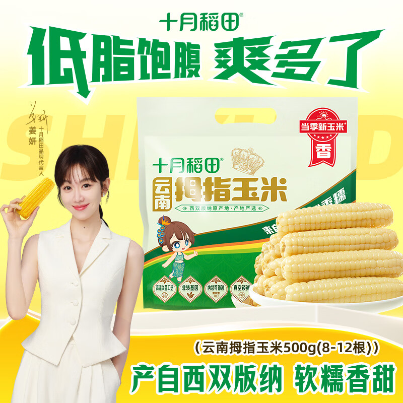十月稻田 甜糯玉米 真空包装 休闲零食 云南当季 拇指玉米500g*1袋