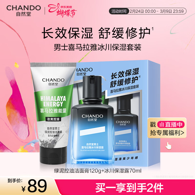 自然堂男士冰川保湿两件套礼盒清爽补水护肤品生日礼物男友