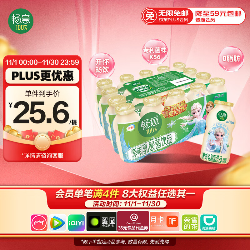 伊利畅意乳酸菌饮品原味 100ml*20瓶 礼盒装
