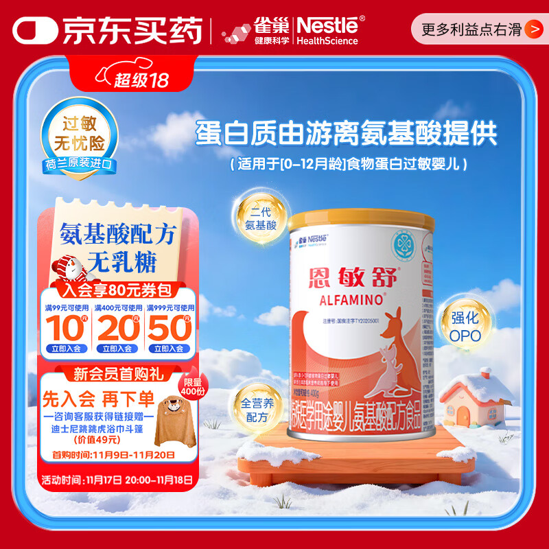 雀巢健康科学 恩敏舒 无乳糖 氨基酸配方食品 二代氨基酸强化OPO正品保证 400g