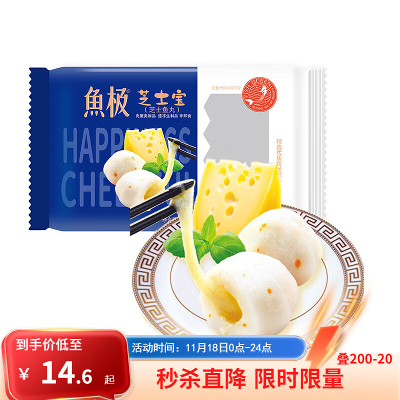 鱼极 芝士宝160g包心鱼丸芝士包鱼糜40%+芝士15%+烧烤火锅食材丸子