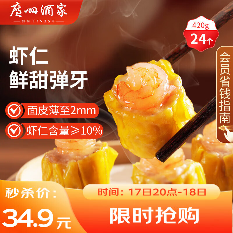 广州酒家利口福 虾仁干蒸烧麦 210g*2袋 24个 早餐半成品 广式早茶 烧卖 年夜饭
