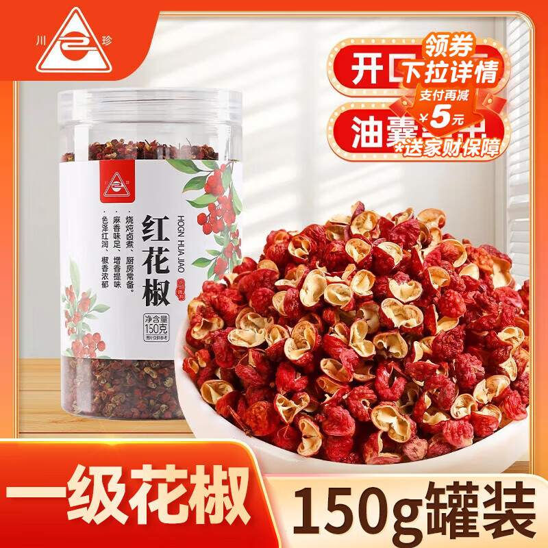 川珍红花椒150g罐装 一级麻椒 干花椒粒 火锅底料烧卤调味料 香辛料