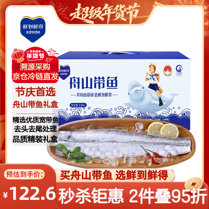 鲜到鲜得 冷冻舟山带鱼礼盒5.6斤 带鱼整条 生鲜鱼类 海鲜 年货礼盒