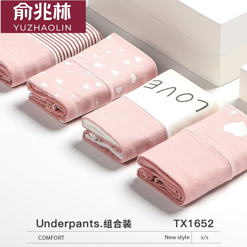 俞兆林青春期少女内裤13岁中大童胖女孩12高初中学生纯棉裆高腰三角短裤 NK1652 粉色4条装 XL /170(120-140斤)