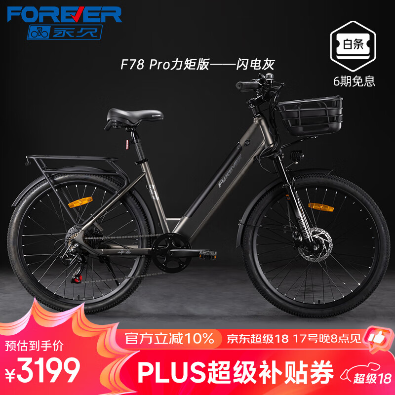 永久(FOREVER)电助力自行车超长续航可拆卸锂电池男女变速双碟刹轻便通勤电动车 F78pro-闪电灰-20AH-力矩油碟版 26寸7速