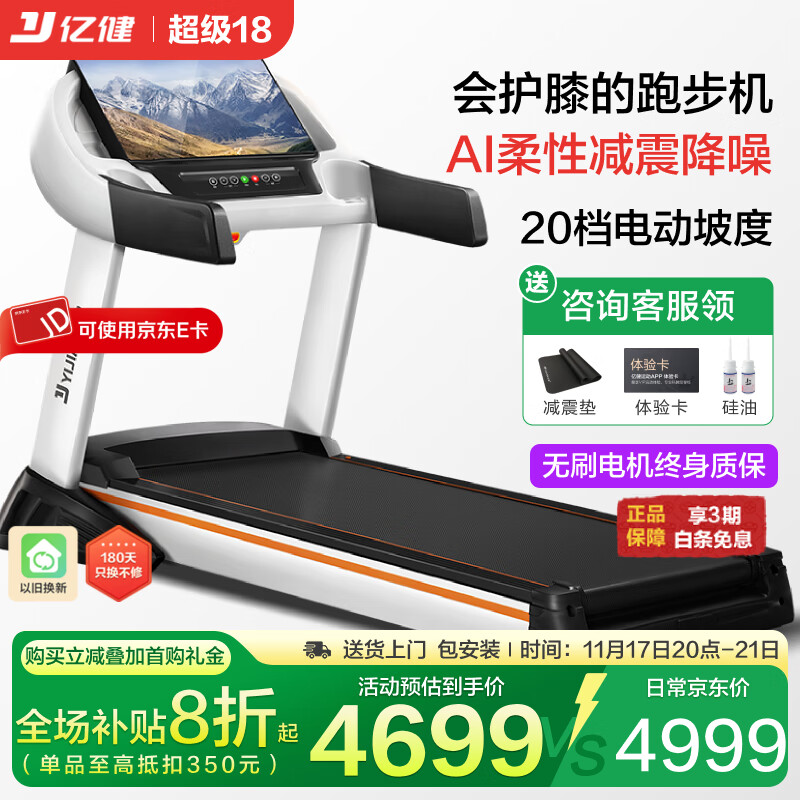 亿健跑步机家庭用商用级71CM大跑台可折叠降噪坡度运动健身器材S100 【21.5吋彩单】20档坡度/300斤