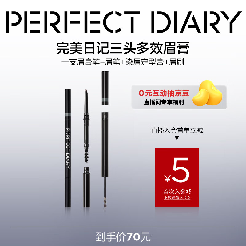 完美日记三头多效眉膏笔01自然灰一笔三用染眉膏防水防汗顺滑持久不晕染