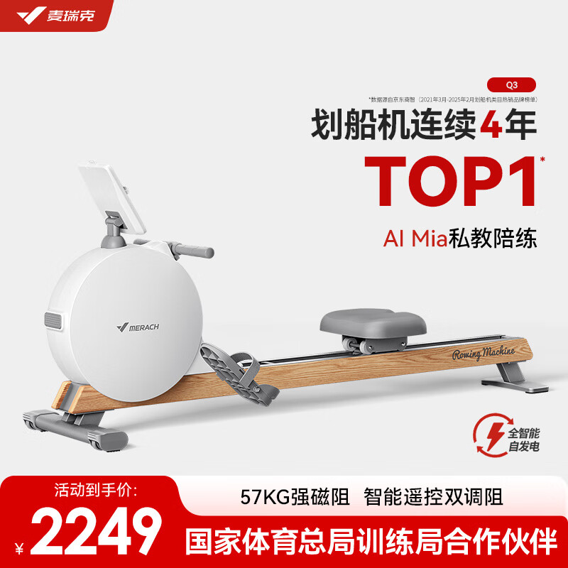 麦瑞克划船机家用智能调阻磁控健身器材室内有氧无氧运动Q3 自发电-智能遥控双调阻