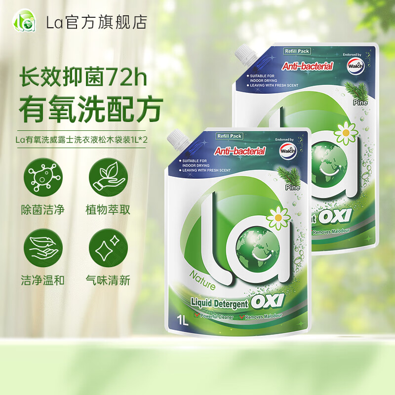 威露士洗衣液la有氧洗袋装洁净除菌除螨 松木4斤(1L*2袋)