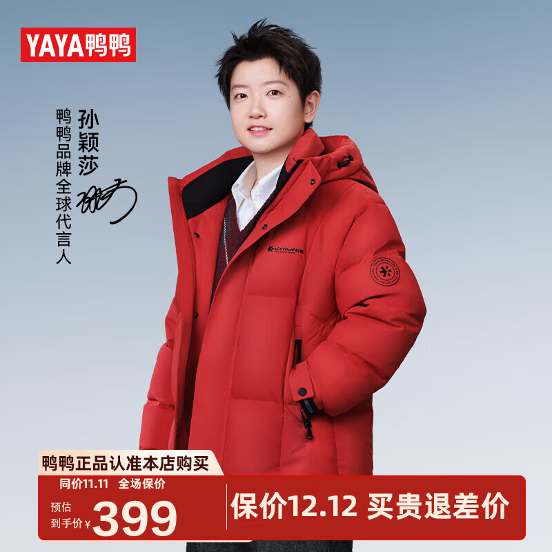 鸭鸭孙颖莎同款小雪花羽绒服男女2025冬季新款休闲加厚保暖防寒外套DY 中国红色 XL 180/96A
