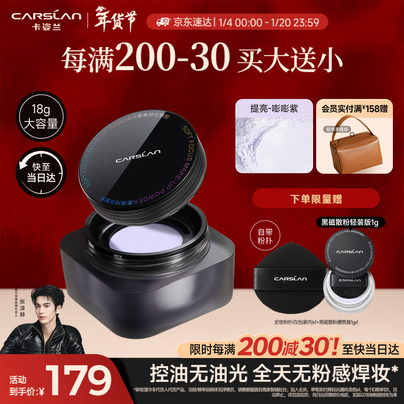 卡姿兰(Carslan)黑磁散粉定妆蜜粉饼控油遮瑕持久防汗大容量(蓝紫色)18g 新年礼物