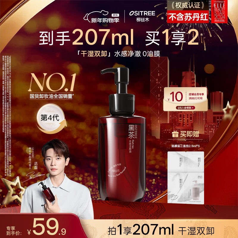 柳丝木(Ositree)【丞磊同款】黑茶水感卸妆油眼唇卸三合一干湿双卸礼物 200ml
