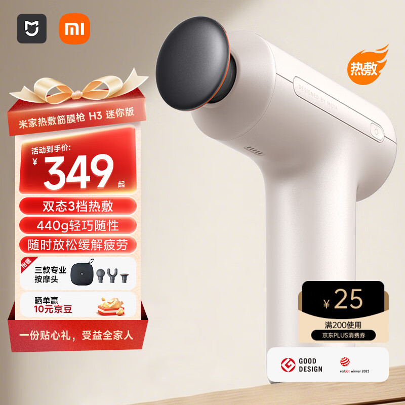 米家(MIJIA)热敷筋膜枪H3 迷你版 小米mini筋膜枪肌肉深层按摩枪按摩仪 珠光沙 运动健身推荐 年货节送礼推荐