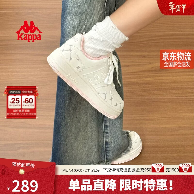 卡帕(Kappa)女鞋冬季2025新款增高小白鞋子女款休闲运动板鞋女潮鞋 奶茶粉 40