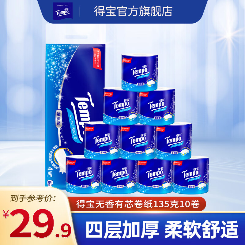 得宝Tempo得宝有芯卷纸4层加厚135g10卷单提实惠装手纸卷筒纸厕纸 4层 135g/卷*10卷
