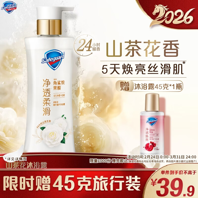 舒肤佳新升级净透沐浴露山茶花380g含角鲨烷柔滑持久留香 男女士通用