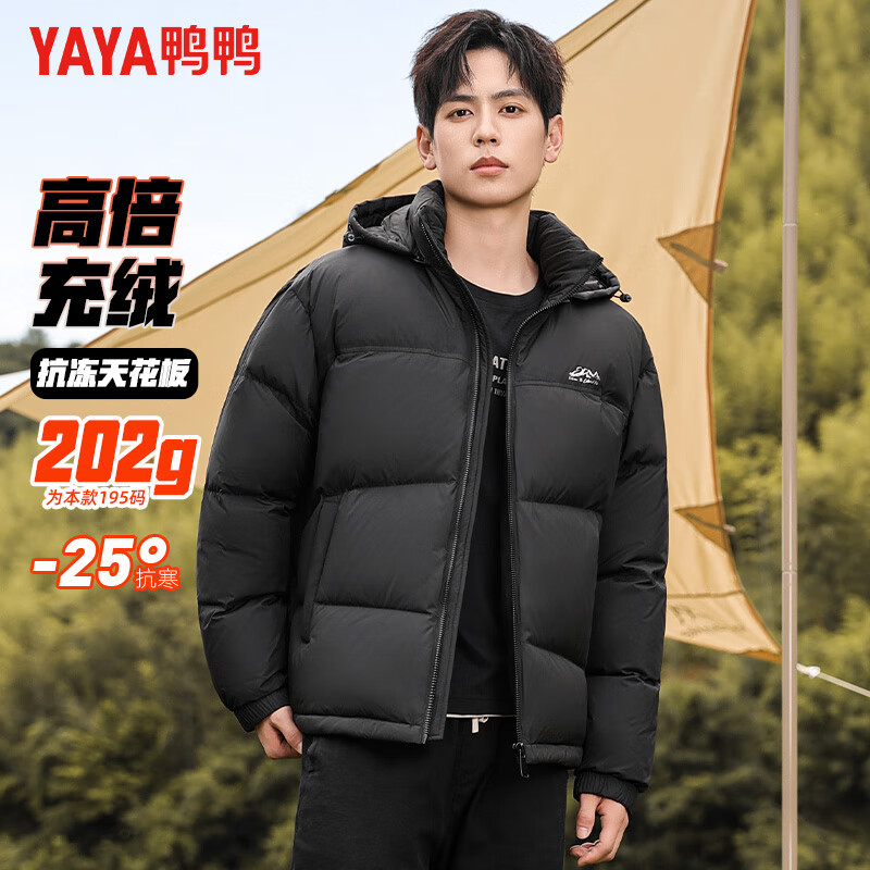 鸭鸭(YAYA)羽绒服男短款可拆连帽加厚拼色青年冬季保暖面包服外套Y01黑色175