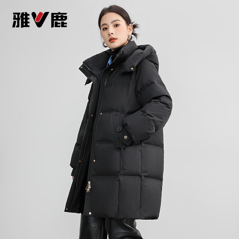雅鹿长款羽绒服女2025新款可拆卸帽防风保暖时尚加厚秋冬外套