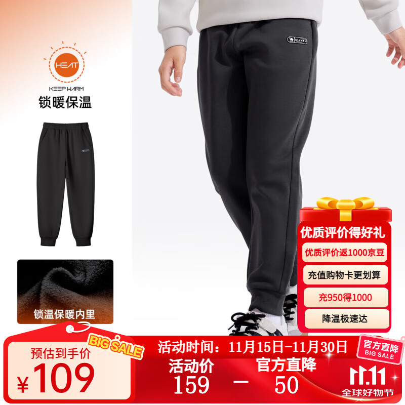 骆驼儿童冲锋裤中大童软壳裤户外防水裤男童女童秋冬加绒长裤 D65CK08067,墨灰色 170