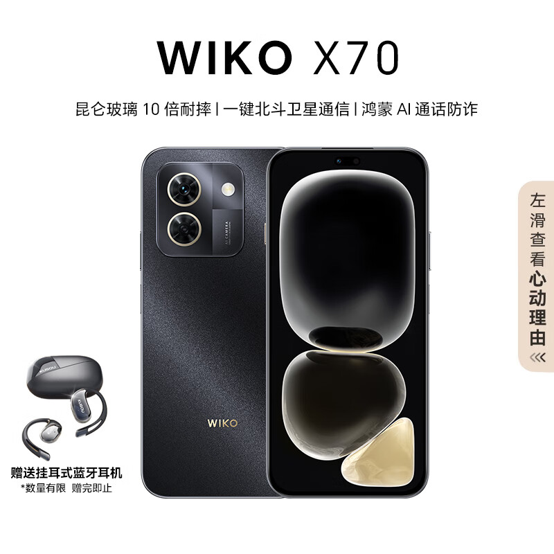 华为(HUAWEI)智选 WIKO X70 12GB+256GB曜金黑 昆仑玻璃 10倍耐摔 一键北斗卫星通信 鸿蒙AI 5G智能手机