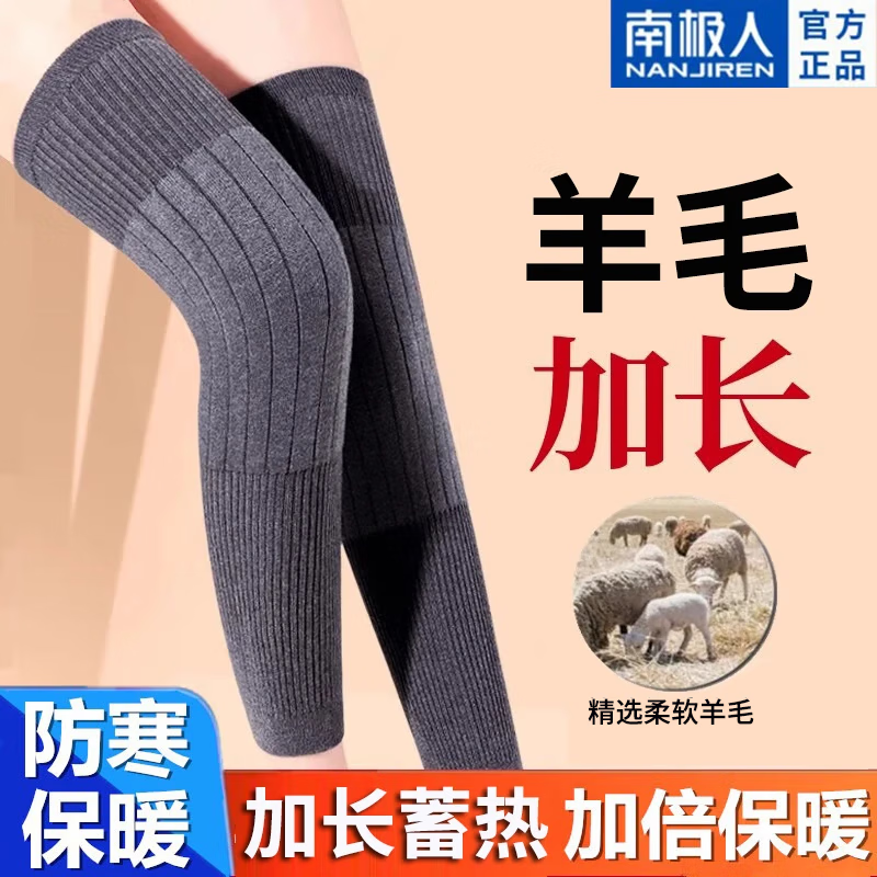 南极人护膝保暖关节炎男女款发热加绒老寒腿中老年人防寒保暖护膝盖护具 精选羊毛护膝丨加长款 均码丨80-180斤通用丨两只装
