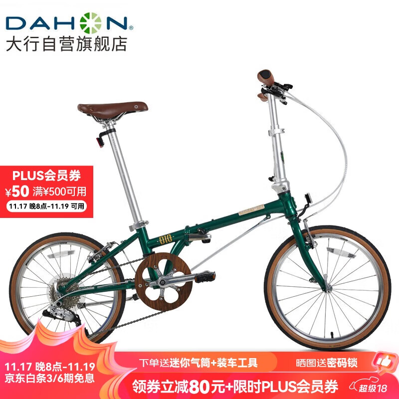 大行(DAHON)D10折叠自行车20英寸10速成人复古单车HAC003 邮政绿