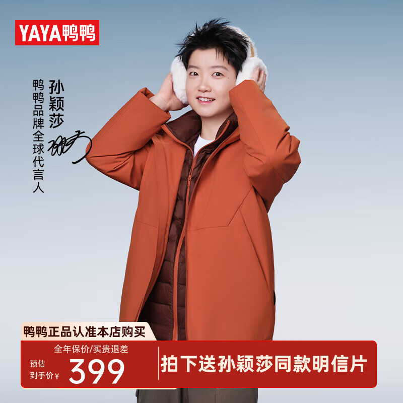 鸭鸭孙颖莎同款新山系羽绒服男女2025冬季新款户外连帽防风保暖外套 橘色 L