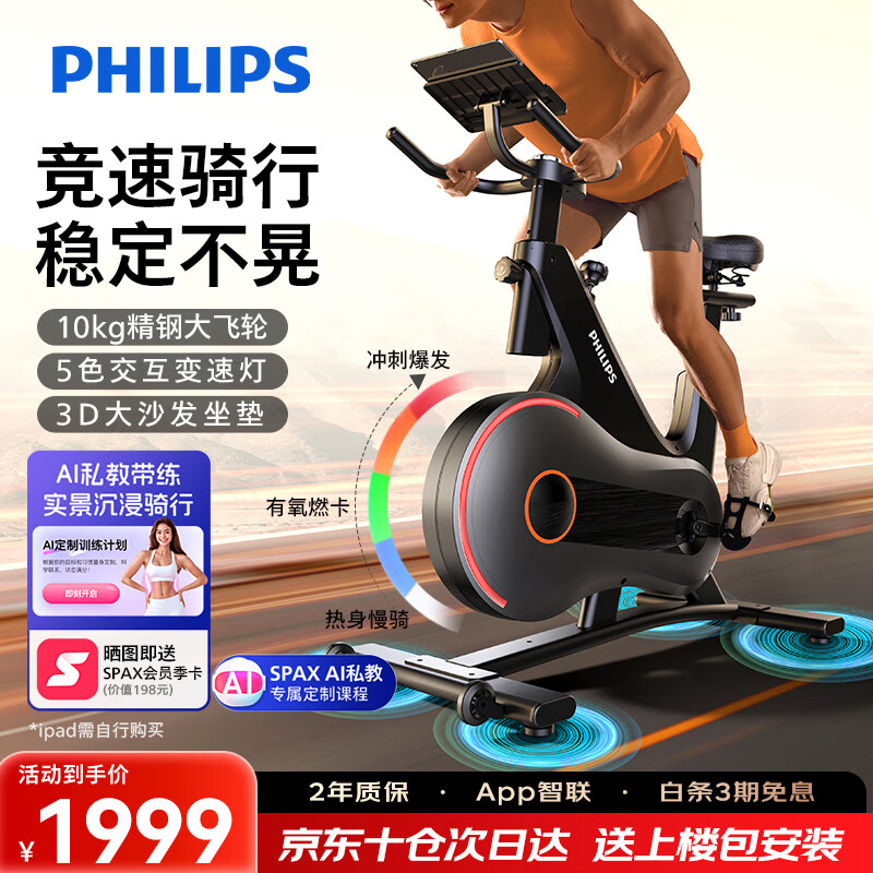 飞利浦动感单车家用智能调阻磁控运动锻炼健身器材室内静音自行车3101B