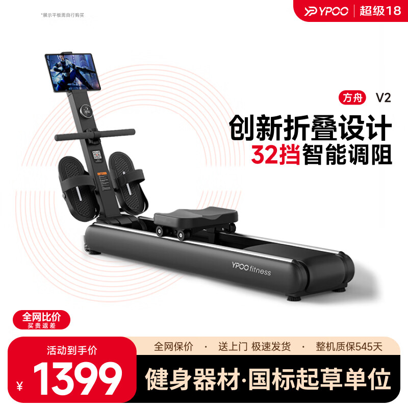 易跑YPOO方舟V2划船机家用自发电智能调阻磁控可折叠室内有氧健身器材 自发电曜夜黑-智能调阻/可折叠
