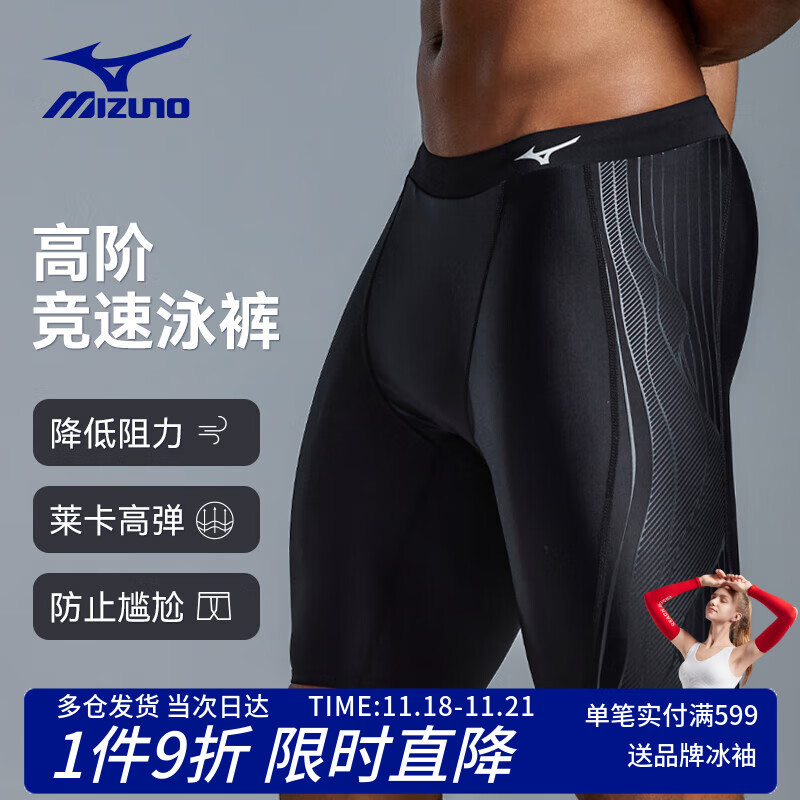 美津浓(MIZUNO)泳裤男士长款五分专业训练速干防尴尬大码游泳镜套装备BC105黑XL