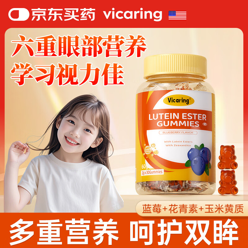 VICARING儿童叶黄素软糖学生青少年保护视力护眼防蓝光含玉米黄质30粒