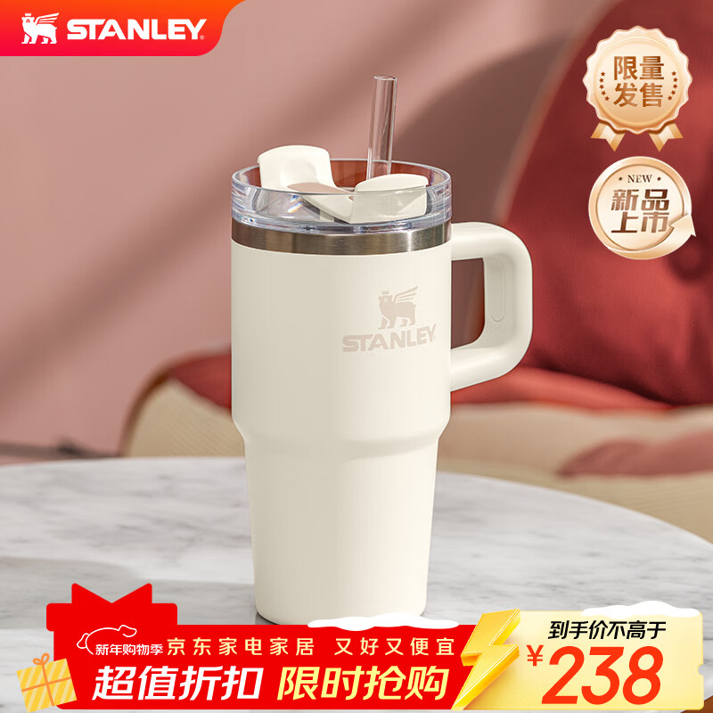 STANLEY保温杯水杯吸管杯大容量杯子保温保冷车载家居办公男女礼物 【新升级】米白色- 591ml