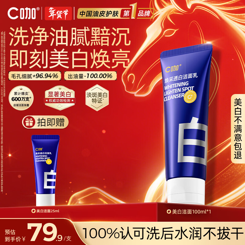 C咖美白洗面奶100g氨基酸深层清洁控油保湿淡斑男女新年礼物