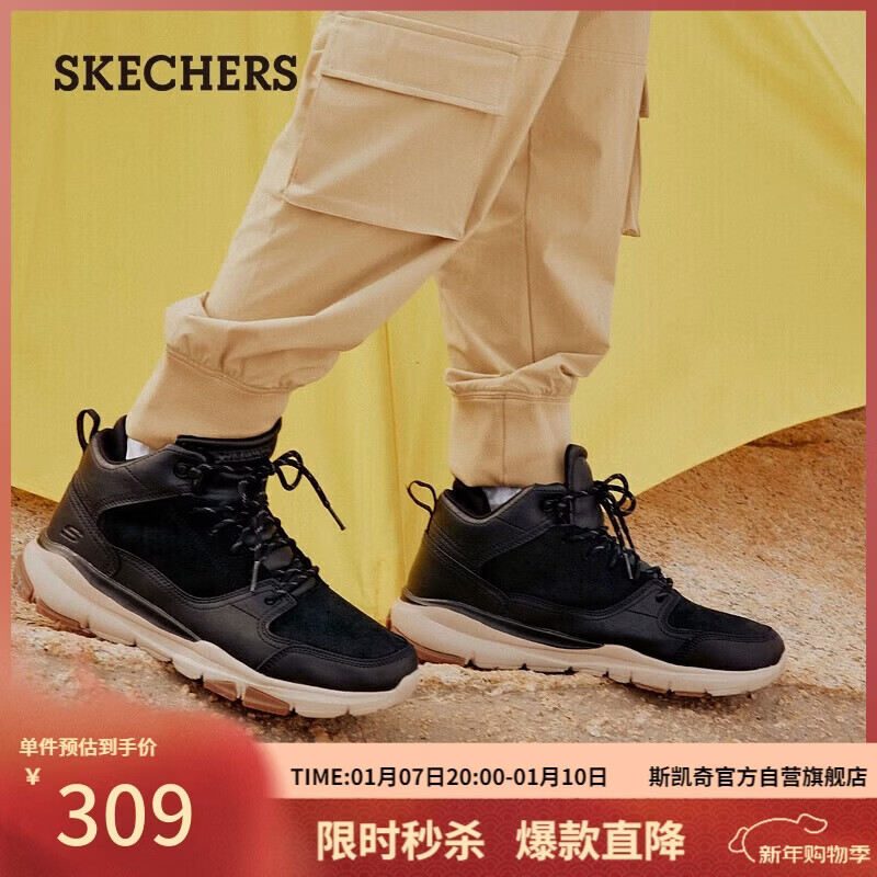 斯凯奇(Skechers)新年礼物男鞋冬中高帮休闲鞋户外百搭增高男靴运动鞋工装靴65731