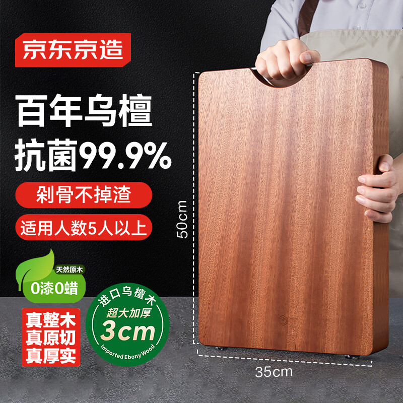 京东京造 菜板 砧案板切菜实木家用双面抗菌【乌檀整木】加厚 50*35*3cm