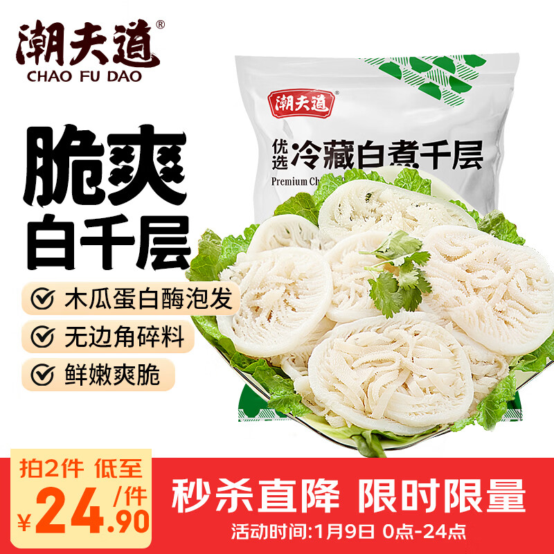 潮夫道冷藏白千层肚500g 川渝火锅食材麻辣烫毛肚牛肚牛百叶生鲜