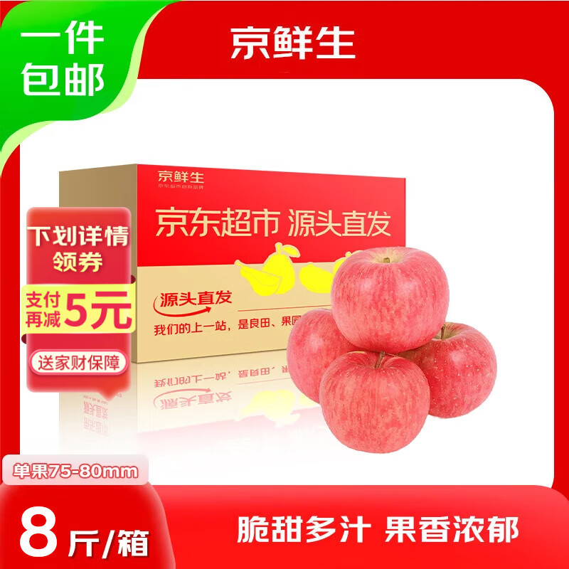 京鲜生山东烟台红富士净重8斤 单果75mm+ 生鲜水果源头直发包邮