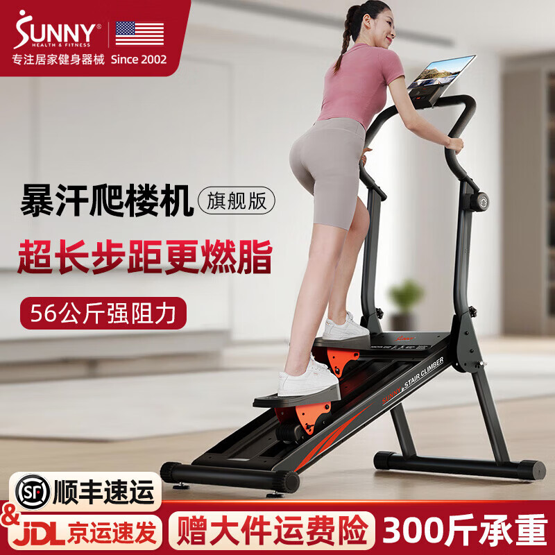 SUNNY美国登山爬楼机家用迷你室内踏步爬坡机减肥脚踏机运动健身器材 坡度阻力可调|56KG大阻力免费课程