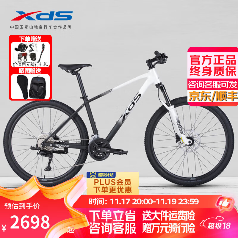 喜德盛山地车2025款逐日700越野车18速避震运动户外休闲变速单车 白黑19寸