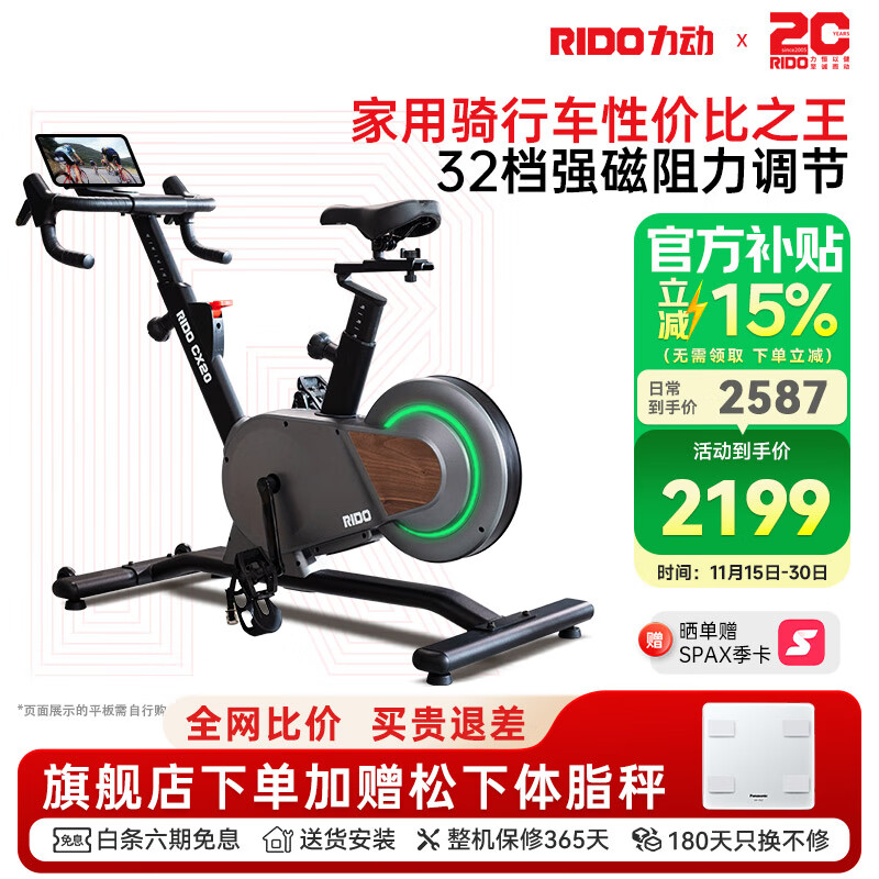 力动(RIDO)动感单车健身房家用室内公路车智能骑行台支持zwift静音减肥器材 【CX20】32档强磁阻力 双倍燃脂
