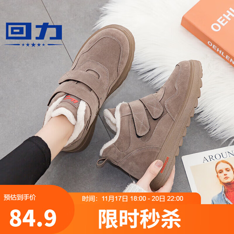回力(Warrior)棉鞋女雪地靴妈妈棉靴加绒加厚保暖棉鞋 KGH0086B 棕色 38